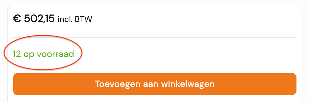 Direct onder de prijs staat het aantal stuks in voorraad aangegeven.