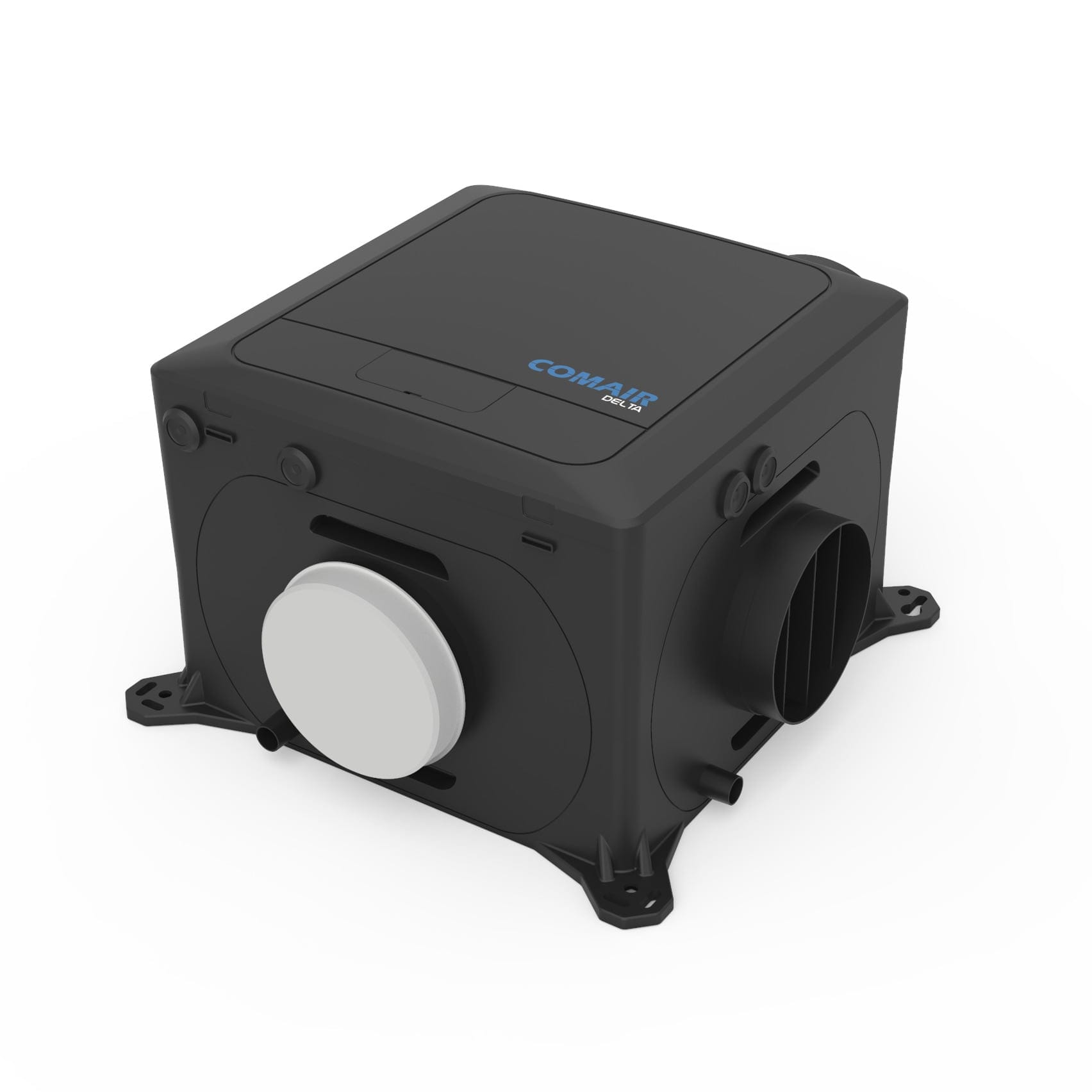 Woonhuisventilator Comair Delta 52YB voorzien van energiezuinige gelijkstroommotor en aansluitsnoer met randaarde steker.