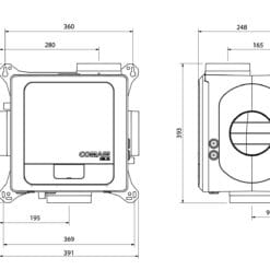 Aansluitdiameter afzuigkanalen: 3x 125 mm.