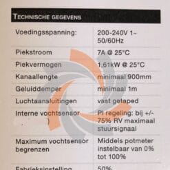 De vochtsensor is apart van de andere regelapparatuur te begrenzen. Hierdoor zal de unit middels de hygro sensor nooit harder gaan draaien dan ingesteld. Op de hygro printplaat zit een potmeter waarmee de sensor te begrenzen is van 0% tot 100%. Af fabriek staat deze potmeter op 50%.
