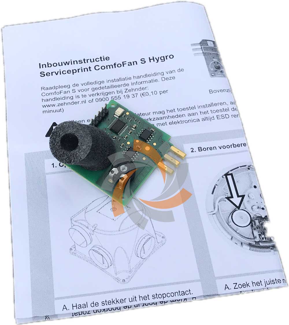 Inbouwset Hygro serviceprint t.b.v. Zehnder ComfoFan S en nieuw type serviceset CMFe, met de kleine hoofdprint en EBM motor.