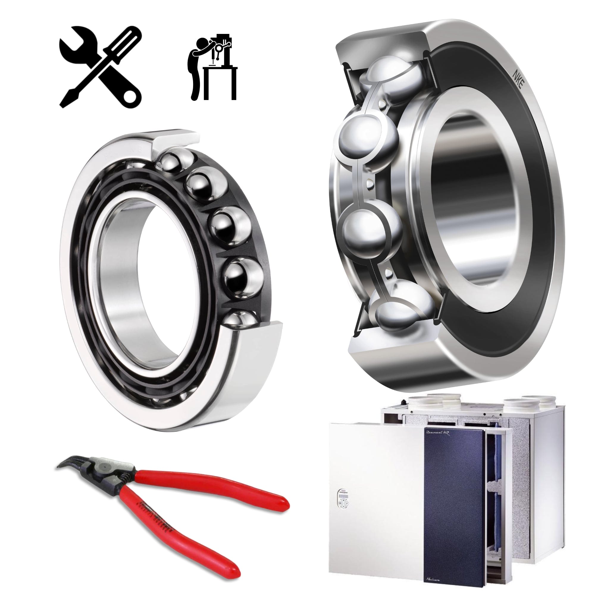 Dit aanbod is voor de vervanging (in onze werkplaats) van de motorlagers van een ‘EBM Pabst’ ventilator toegepast in onderstaande types: